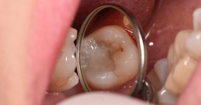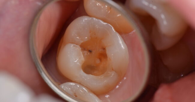 ここからは、虫歯がある、という印象は受けないと思います。むしろ、これを見せて「治療します」と言うと「何で??」となる方の方が多いのではないでしょうか?